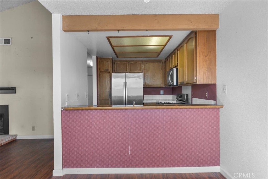 Welcome to 1301 Via Sebastian #20, a 2-bedroom, 2-bathroom condo nestled in the peaceful grounds of the Ponderosa Springs complex in San Pedro. This cozy 961 sqft residence boasts a spacious living room with a fireplace and high ceilings, creating an open and inviting atmosphere for both relaxation and entertainment. Through the sliding doors is the patio, overlooking the interior of the community. The kitchen has tile counters, stainless steel appliances, and opens to the dining area. The remodeled hallway bathroom has a separate area for the side-by-side washer and dryer. Down the hall is the guest bedroom and primary suite which includes a walk-in closet and en-suite bathroom. Additional highlights include a forced-air heater, central A/C, and two assigned tandem parking spots (#375 & #376). The Ponderosa Springs complex is beautifully landscaped with running water springs, waterfalls, and offers spa areas and a pool. Located close to shopping, entertainment, parks, and highway access, this is an opportunity you do not want to miss!