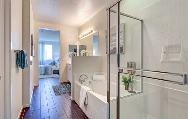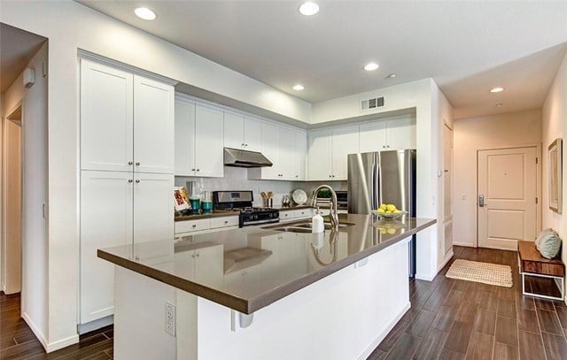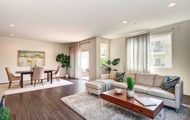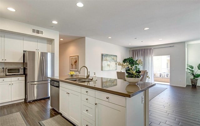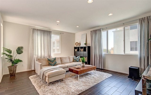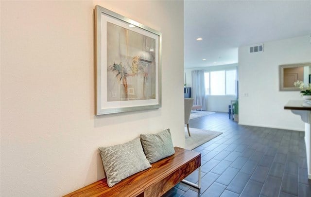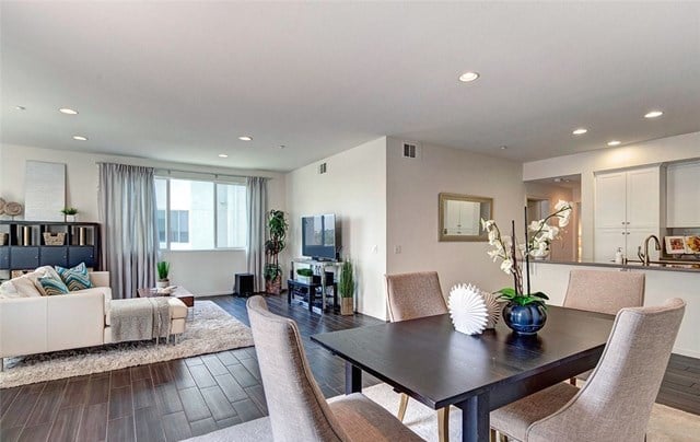 Two bedroom, two bath condo in the gated community of 360 South Bay. Large open floor plan Flats model with wood look ceramic tile floors throughout, stainless steel appliances, custom pull out drawers in kitchen pantry, large laundry room with built-in shelving for extra storage, and quiet balcony overlooking landscaped courtyard. Master suite walk-in closet also fitted with cabinets for perfect organization. 360 South Bay is a beautifully landscaped gated community with easy access to LAX, Manhattan Beach and Playa Vista/Marina del Rey with state-of-the-art fitness center, three heated pools, sports courts, community rooms, and dog parks. Highly rated Wiseburn School District.