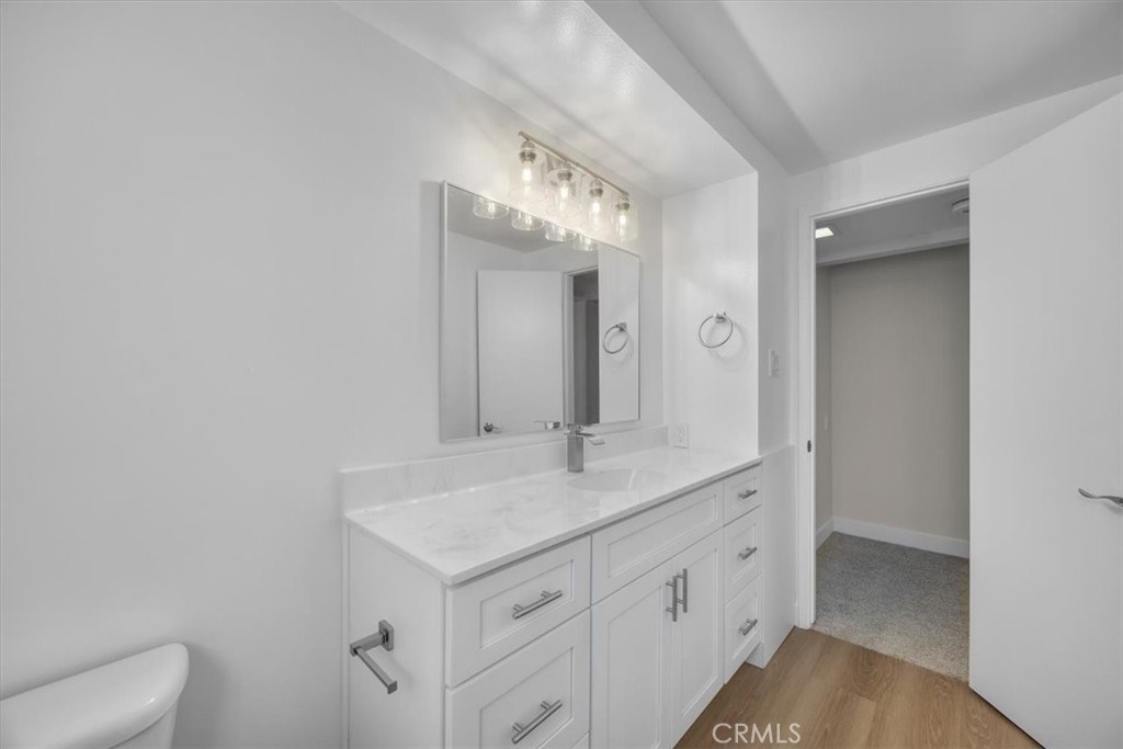 Welcome to this beautifully updated 2 bedroom, 2 bathroom condo in the Merit Manor community of Gardena, offering 1,012 sq ft of modern, move-in ready living. Step inside to an open layout with a bright living room that flows seamlessly to a large balcony overlooking the community courtyard. The kitchen has been fully renovated with modern finishes and brand new appliances, while both bathrooms have been updated with sleek, contemporary design. The spacious primary bedroom features a private ensuite bathroom, while the second bedroom offers flexible options for guests, family, or a home office. Additional highlights include in-unit washer and dryer hookups, new vinyl and carpet flooring, and one assigned parking space with additional storage. Centrally located near shopping, dining, and freeway access, this turnkey condo is truly one you won't want to miss.
