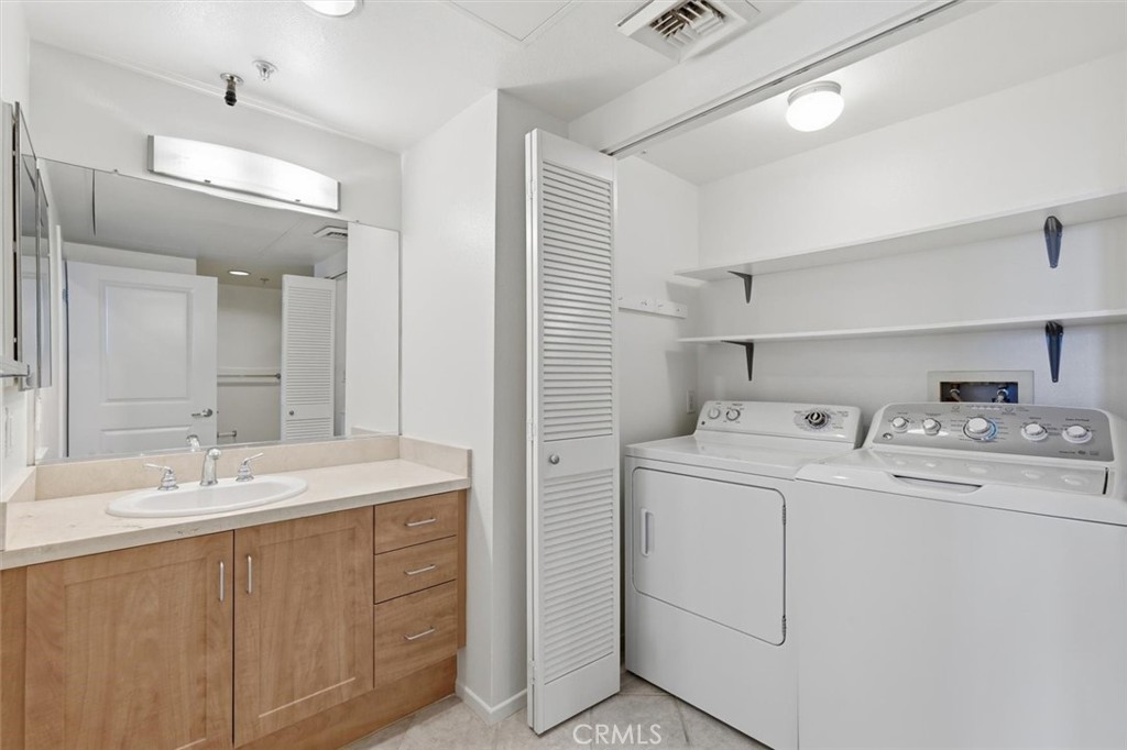 Located in the historic Little Tokyo district of Downtown Los Angeles, this desirable 55+ condominium is situated in arguably one of the best locations within the Teramachi building. This updated 2-bedroom, 2-bathroom unit features a south-facing orientation that fills the living spaces with natural light. Enjoy serene courtyard views from your private balcony, offering both tranquility and privacy. With new carpet and fresh interior paint, the home showcases a spacious floor plan that includes a large walk-in closet, central air and heat, in-unit washer and dryer, and a well-equipped kitchen with stainless steel appliances, granite countertops, and a convenient dining counter. The unit includes one assigned parking space in a gated, controlled-access garage, along with additional guest parking for visitors. Teramachi residents enjoy resort-style amenities, including a beautifully landscaped courtyard with ponds and waterfalls, a fitness center, sauna, guest lounges, a two-story community room, BBQ areas, and 24-hour front desk security station - all just moments from Little Tokyo, the Arts District, Grand Central Market, Dodger Stadium, and more.
