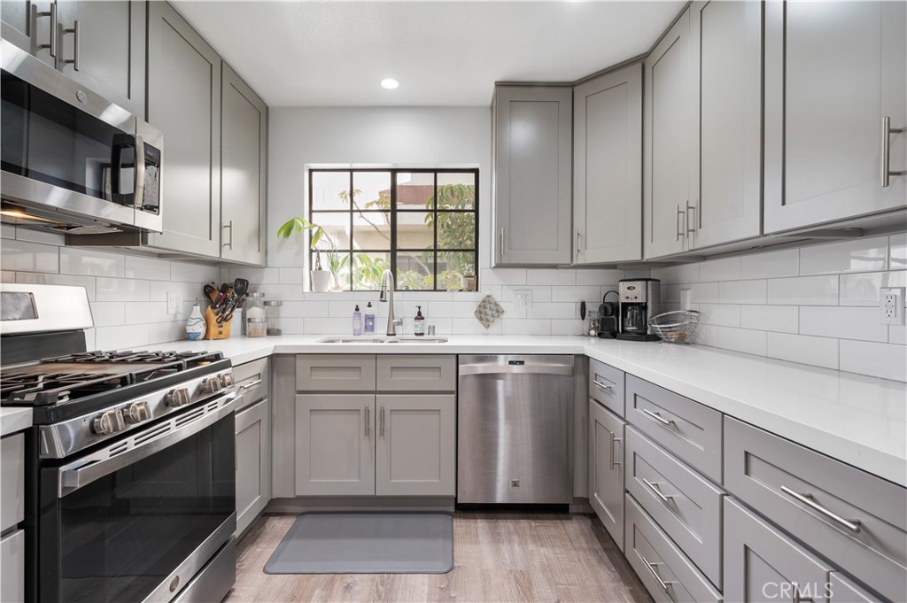 Welcome to a beautifully upgraded 3-bedroom, 2.5-bathroom corner unit located in the highly sought-after gated community of Springwood. Enjoy the privacy of having only one shared wall and the convenience of direct street access at the rear of the complex. The home features a thoughtfully remodeled kitchen with brand-new cabinets, quartz countertops, and stainless-steel appliances. A bonus flex area just off the kitchen offers added versatility for a home office, playroom, or dining room. The bright and spacious living room opens to a private balcony and includes a cozy fireplace, perfect for relaxing evenings. Upgrades abound throughout the home, including new luxury vinyl flooring, recessed lighting on both levels, stylish light fixtures, and ceiling fans in all bedrooms. Bathrooms have been tastefully updated with contemporary finishes, new cabinet doors, and modern hardware. Additional highlights include a new water heater (2022), a new HVAC system (2023), and a spacious 2-car garage with laundry area and ample storage. Enjoy resort-style amenities within the Springwood community, including a sparkling swimming pool, spa, and beautifully landscaped grounds. Located just 3 miles from the beach and within the highly desirable Torrance Unified School District, you'll be minutes from Del Amo Fashion Center, popular Torrance Farmer's Market at Wilson Park, and a wide variety of restaurants. Don't miss the opportunity to own this turnkey townhome in an unbeatable location!