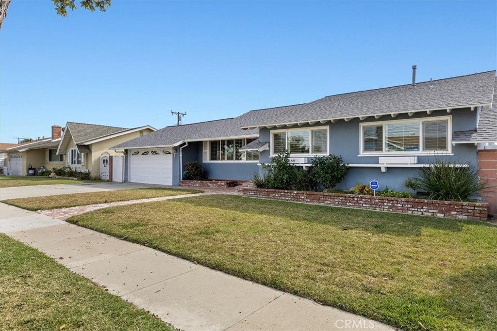 Welcome to 3338 W Teranimar Dr, a remarkable and move-in ready single-level home nestled in Anaheim. This property, making its debut on the market for the first time in over 50 years, presents a rare opportunity. As you step through the front door, you are greeted by a spacious living room with large windows, shutters, and wood flooring. Beyond, the floor plan opens to feature a den, cozy fireplace, and a generously sized dining area. The kitchen boasts abundant cabinet and countertop space, double oven, stainless steel cooktop, and a large pantry. Natural light floods the area through the sliding glass doors and French back door. Proceed down the hallway to find the primary bedroom with an en-suite bathroom, complete with standing shower. There are also two additional bedrooms, an updated full bathroom, and two convenient storage closets. Step onto the back patio to enjoy the expansive backyard - an ideal setting for indoor/outdoor entertaining. There is direct access to the two car garage, where you find laundry hookups and additional storage. Notable updates include a newer A/C and heating system (2017), a newer roof (2020), and new laminate flooring and baseboards in the bedrooms (2023). Conveniently situated near shopping, restaurants, and highway access, this home is a must-see!